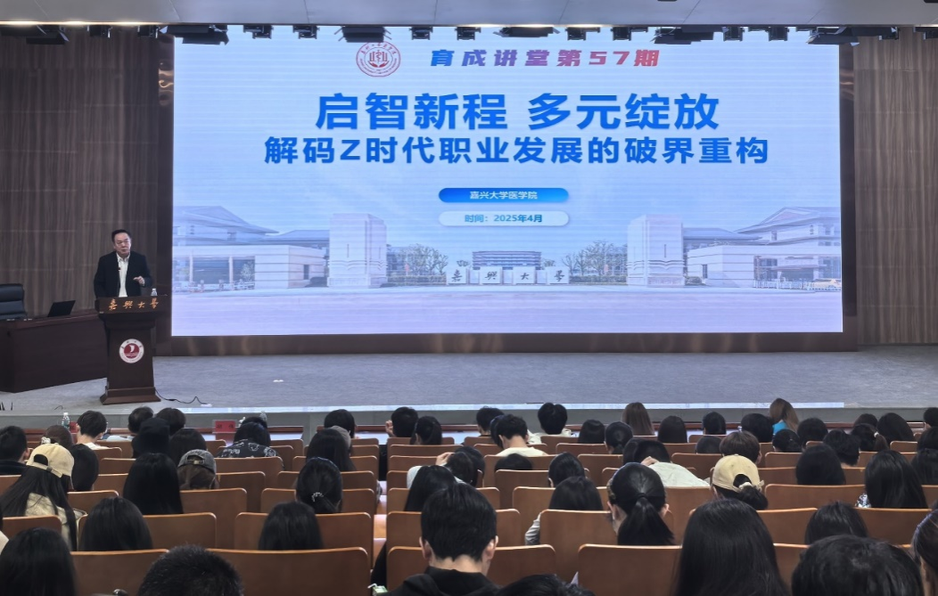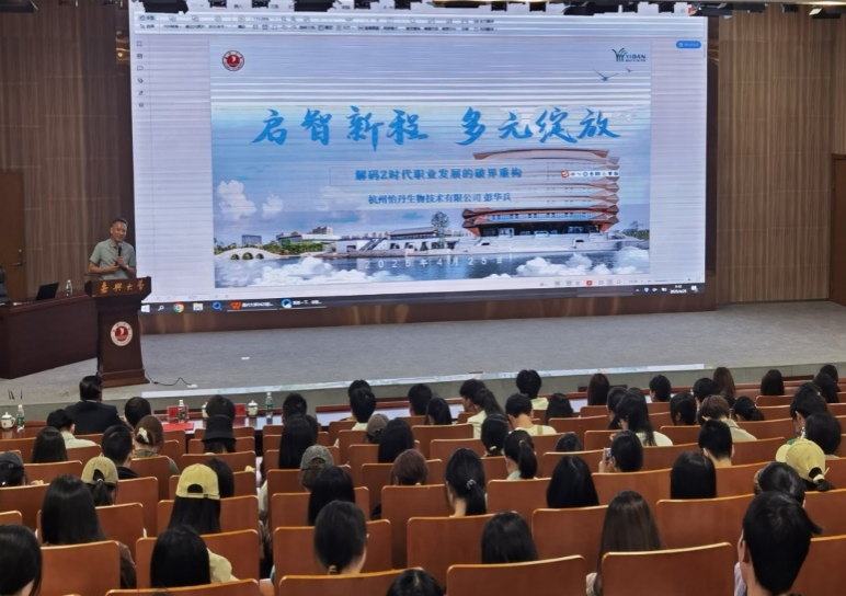 2025年4月25日上午,由创新创业公司主办、yl永利集团官网登录承办的“育成讲堂”第57讲“启智新程 多元绽放——解码Z时代职业发展的破解重构”主题讲座在梁林校区图书馆学术报告厅举行。杭州怡丹生物技术有限公司董事长、党支部书记、高级经济师彭华兵受邀担任此次讲堂的主讲嘉宾,公司党委书记陈云飞主持讲座,创新创业学业经理胡伟、公司党委副书记朱莹及全校300多名员工参加了讲座。