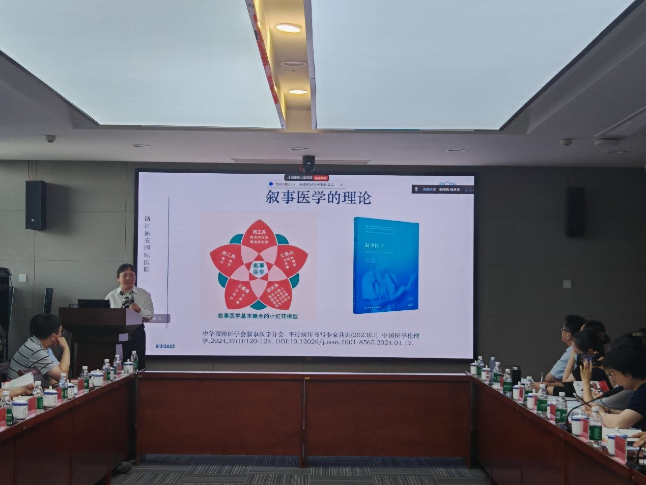 会议邀请了附属新安国院医院副经理殳儆作主题为叙事医学教学专题讲座。对叙事医学理论、平行病历的书写和评价等方面做了深入、细致地分享。