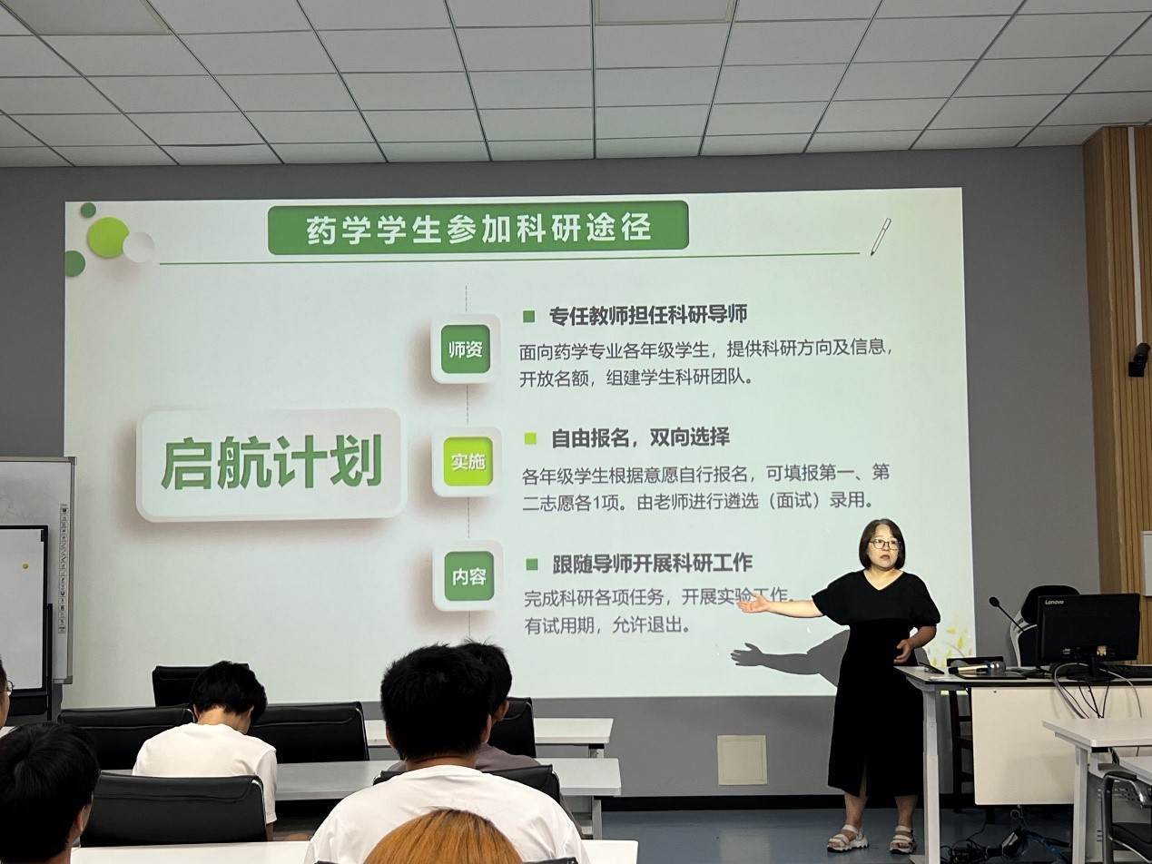 “启航计划” 搭建起优质的师生互动桥梁,既点燃了同学们参与科技创新与创业项目的热情,助力创新创业意识培育,也推动了一支集科研指导、赛事辅导、项目支持于一体的高水平团队队伍建设。药学系后续将完善管理与评价体系,全程跟踪员工科研进展,保障科研训练质量。此次活动作为药学专业成长导航系列的重要一环,是药学系推进人才培养与学风建设的有力实践。