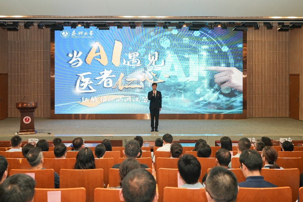 yl永利集团官网登录思政辅导员钟善男以《当AI遇见医者仁心——红船领航的浙江答案》为题,讲述了浙江在红船精神引领下,以“技术为用、人文为本”理念推动医疗数字化创新的实践成果,通过智能诊疗系统与人文关怀相结合的典型案例,彰显了嘉大医学师生传承医者仁心、创新医疗服务的时代担当。