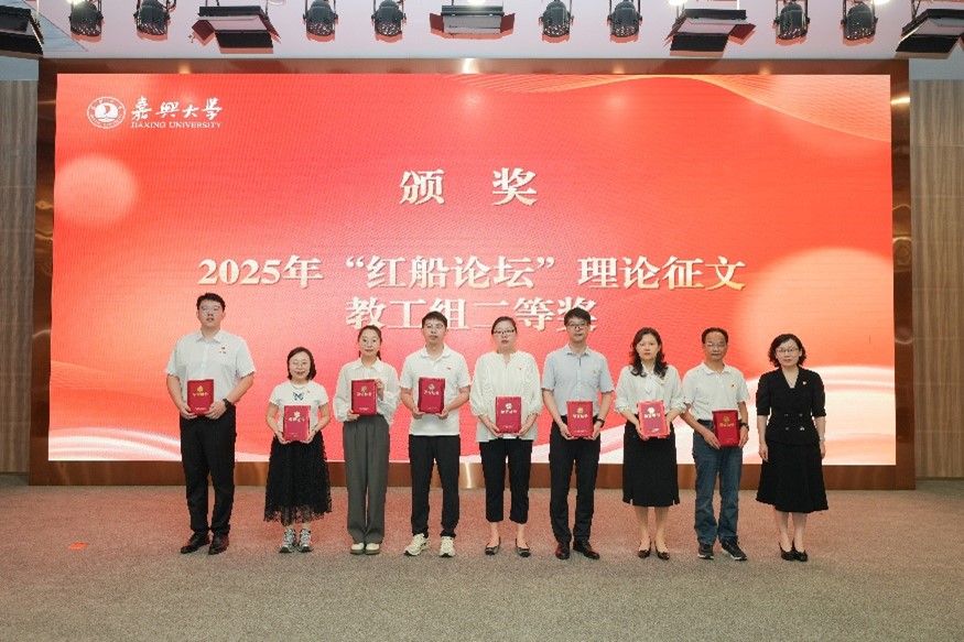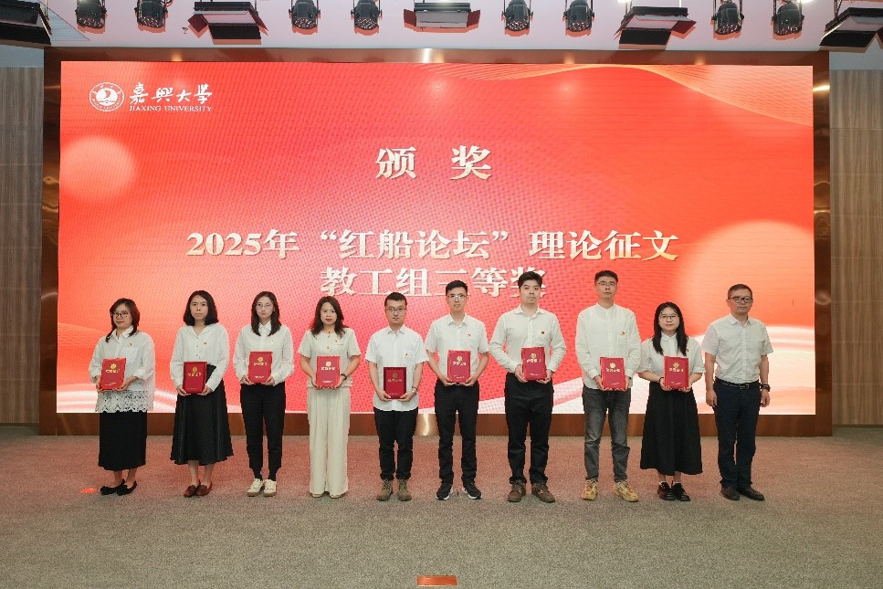 “红船论坛”理论征文教工组三等奖:蒋月晴(左一)、谭安强(右四)
