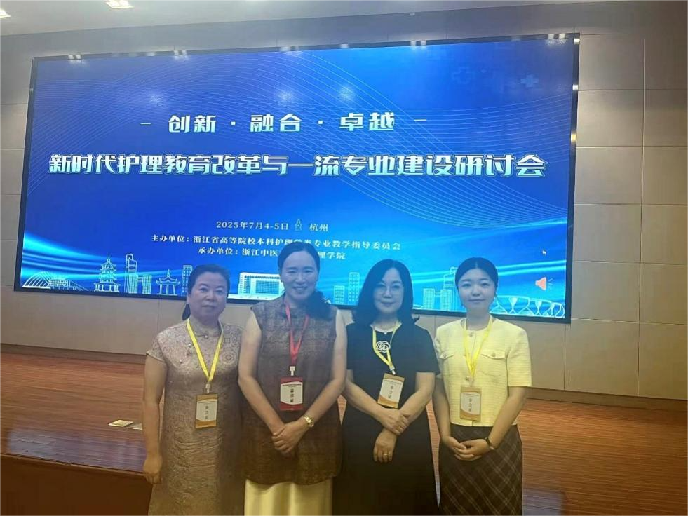 为深入贯彻落实新时代护理教育改革精神,积极推进护理学一流专业建设,全面提升护理人才培养质量,2025年7月4日至5日,yl永利集团官网登录护理学系在肖素香主任带队一行四人赴杭州参加由浙江省高等公司护理学类专业教学指导委员会主办、浙江中医药大学护理公司承办的“新时代护理教育改革与一流专业建设研讨会”。