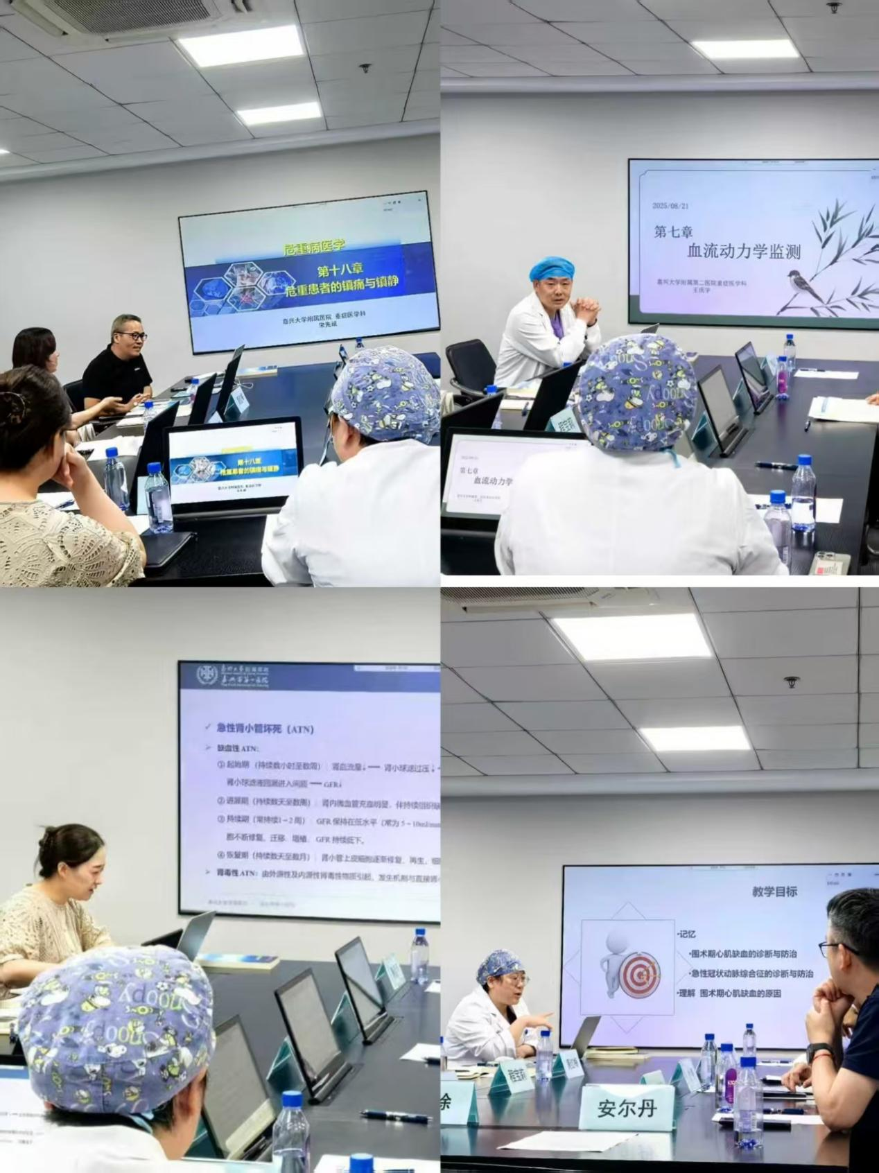 在试讲环节,安尔丹、沈徐、王庆宇、宋先斌等教师分别围绕《急性冠状动脉综合征》、《急性肾损伤》、《血流动力学监测》、《危重患者的镇痛与镇静》进行试讲,与会专家与教研组从知识点呈现颗粒度、重难点逻辑编排、流程图与评估量表(如RASS、CPOT)应用、课堂互动与案例引导等方面提出针对性建议;同时就教学大纲的章节衔接与考核比重达成“以教学蓝图为牵引、强化教考一致性”的共识,建议进一步完善案例库与决策卡片,提升课堂的标准化与可视化。