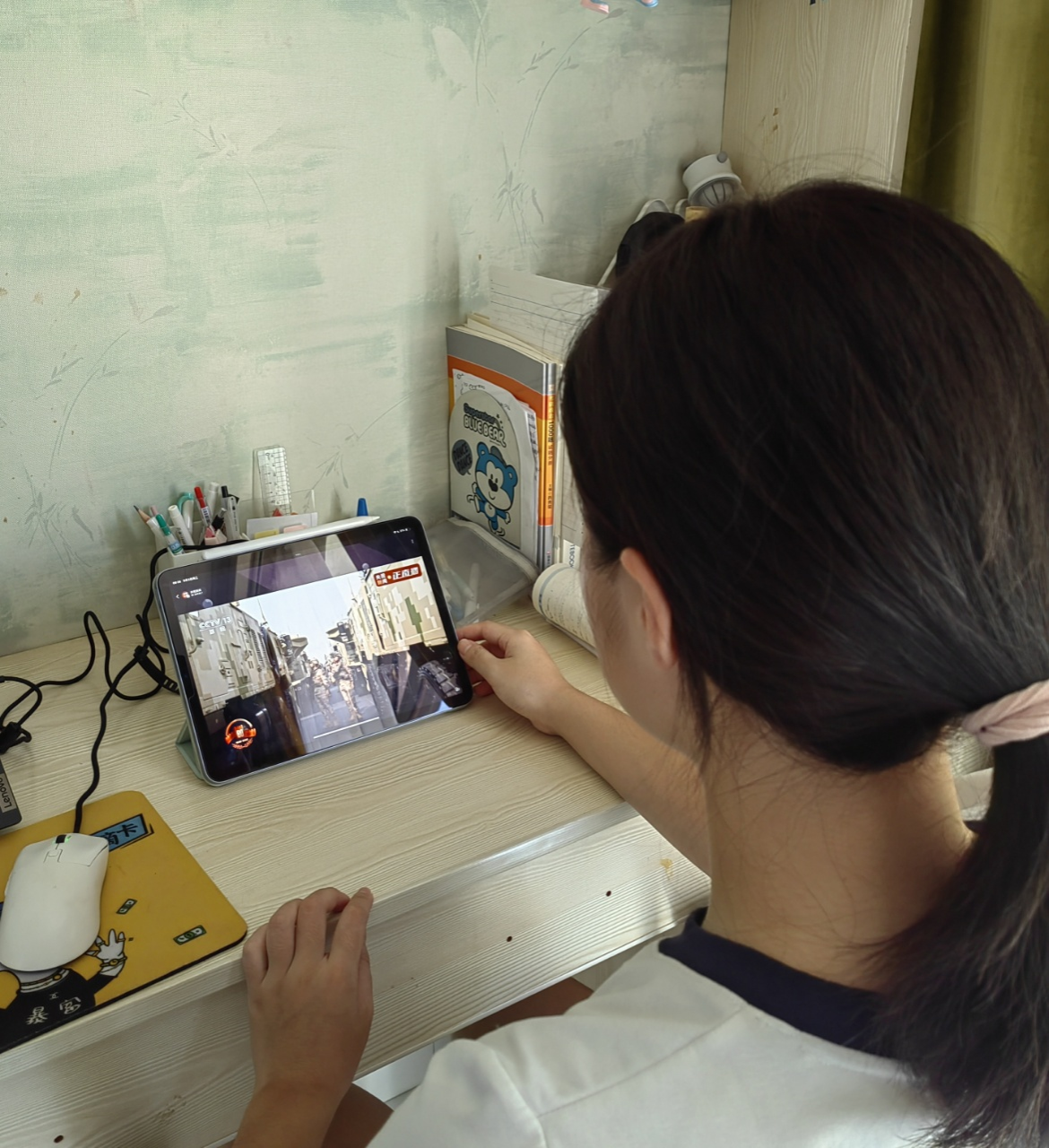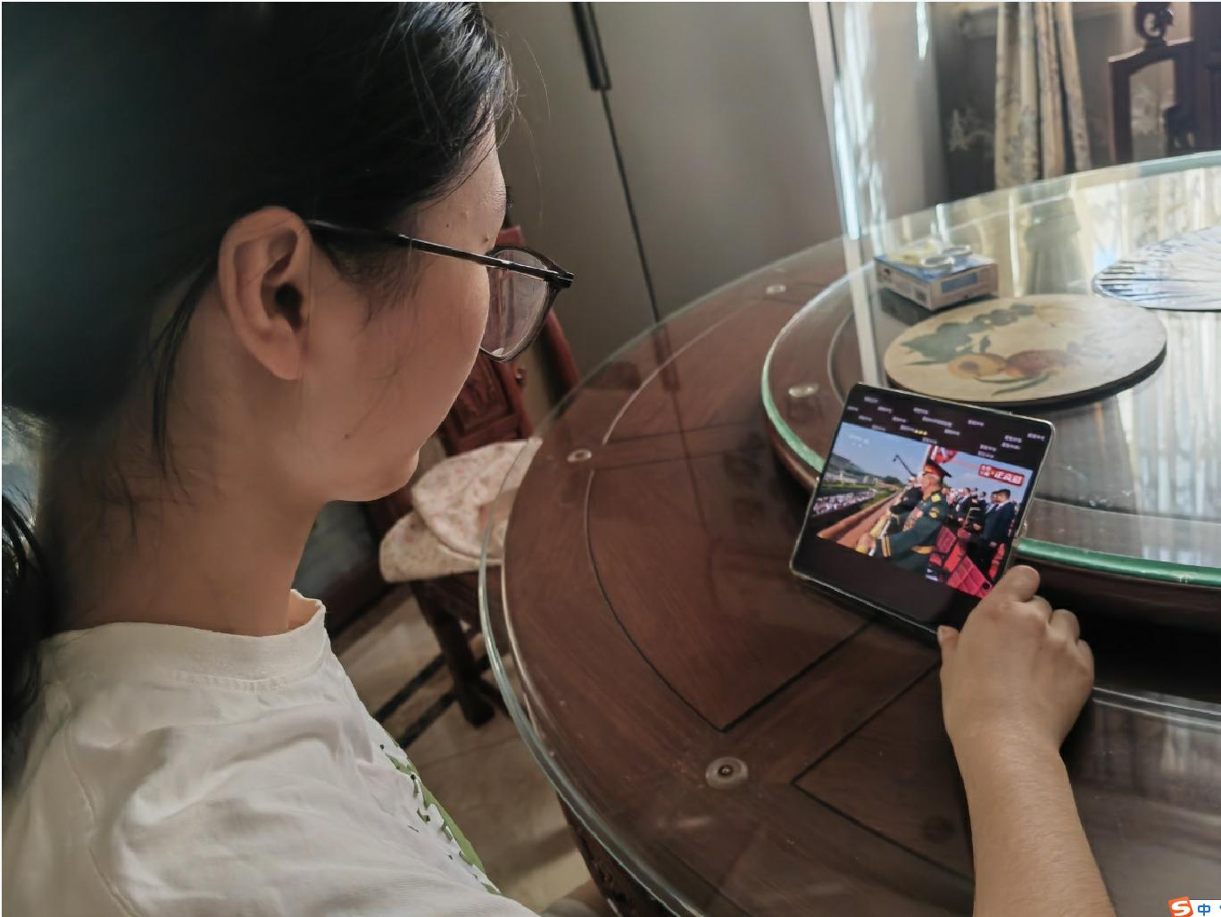 尚未返校的员工们在家中通过电视、手机、网络平台等多种形式收听收看。许多班级还组织了线上观看活动,同学们在云端相聚,共同见证这一历史时刻。