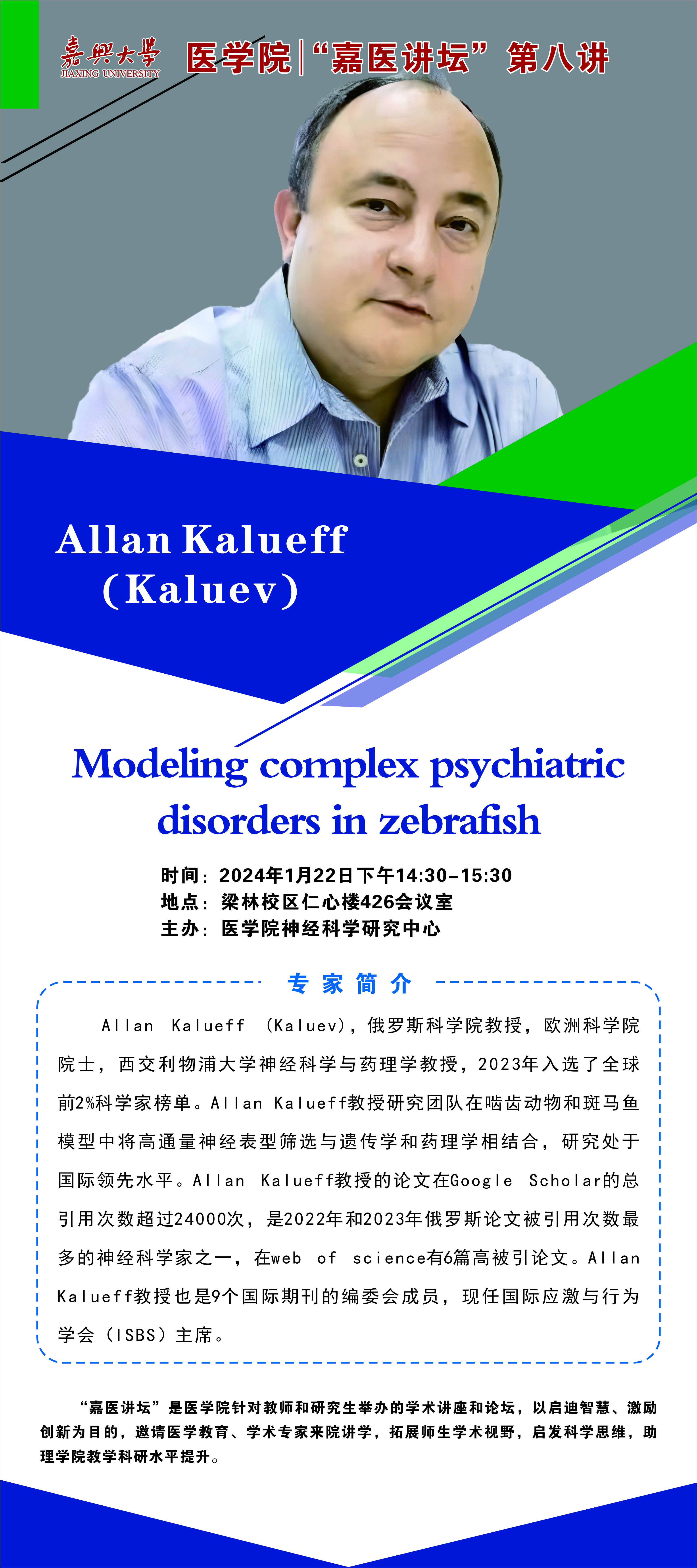 嘉医讲坛第八讲:欧洲科公司院士Allan Kalueff教授