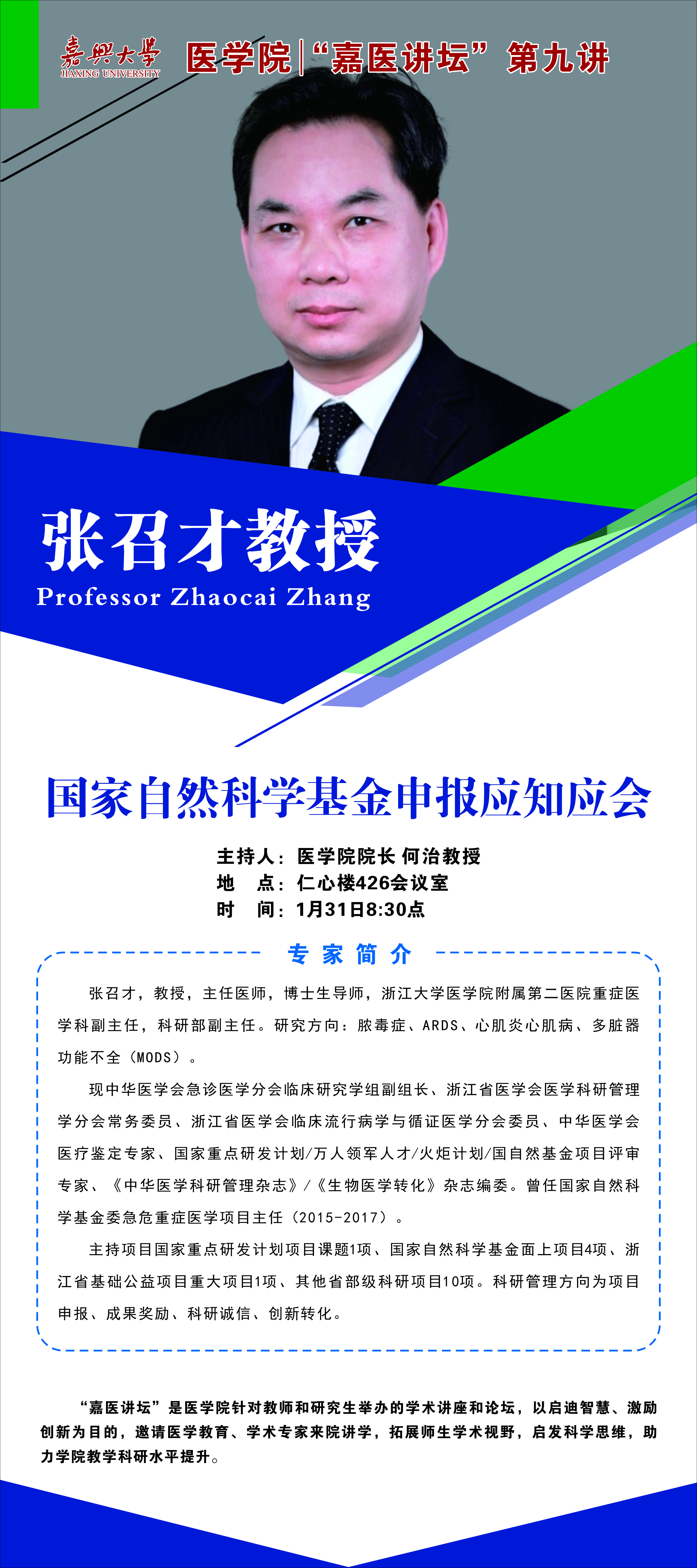 嘉医讲坛第九讲:浙江大学yl永利集团官网登录附属第二医院张召才教授
