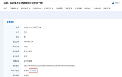 2.进入网页后,账号为身份证号,密码为出生日期(例:19900101)。输入验证码,点击“登录”后,点击“我的”——“个人资料”,核对个人信息,并点击“绑定手机号”,进行个人信息绑定。